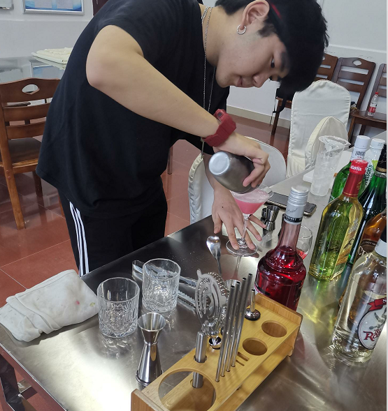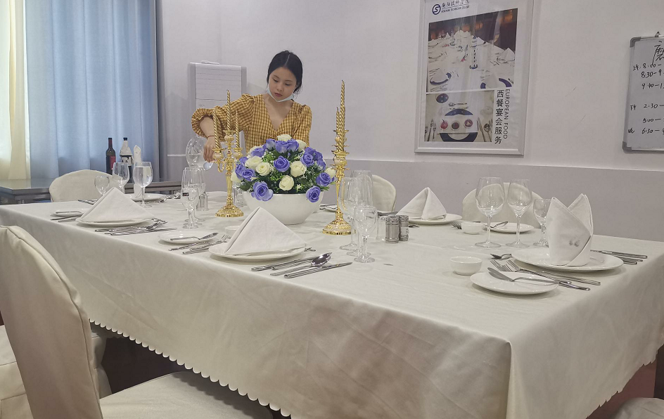 西餐實訓(xùn)室主要面向酒店管理專業(yè)學(xué)生,擁有西餐宴會餐桌椅、西餐全套餐具、咖啡機、冰柜、制冰機、操作吧臺、酒柜、調(diào)酒工具等設(shè)備,并配備西餐服務(wù)、咖啡制作、雞尾酒調(diào)制相關(guān)實訓(xùn)耗材。本實訓(xùn)室可完成《餐飲服務(wù)與管理》、《酒水知識》等課程的教學(xué)任務(wù),通過營造仿真教學(xué)環(huán)境,訓(xùn)練學(xué)生實踐技能。使學(xué)生熟悉西餐服務(wù)、酒水服務(wù)的基本內(nèi)容、要求和服務(wù)流程,掌握西餐宴會擺臺、西餐主題宴會設(shè)計、咖啡制作、雞尾酒調(diào)制、自創(chuàng)雞尾酒等技能和技巧,培養(yǎng)學(xué)生的實踐能力和職業(yè)素養(yǎng),培養(yǎng)學(xué)生綜合分析問題解決問題的能力。