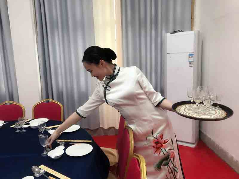 使學(xué)生熟練掌握中餐宴會(huì)擺臺(tái)的基本方法、標(biāo)準(zhǔn)及程序,要求做到操作規(guī)范、熟練無(wú)誤。掌握零點(diǎn)、團(tuán)隊(duì)用餐、中餐宴會(huì)服務(wù)的服務(wù)程序和方法,牢固掌握不同類型中餐服務(wù)的操作規(guī)范、服務(wù)標(biāo)準(zhǔn)和服務(wù)技巧。