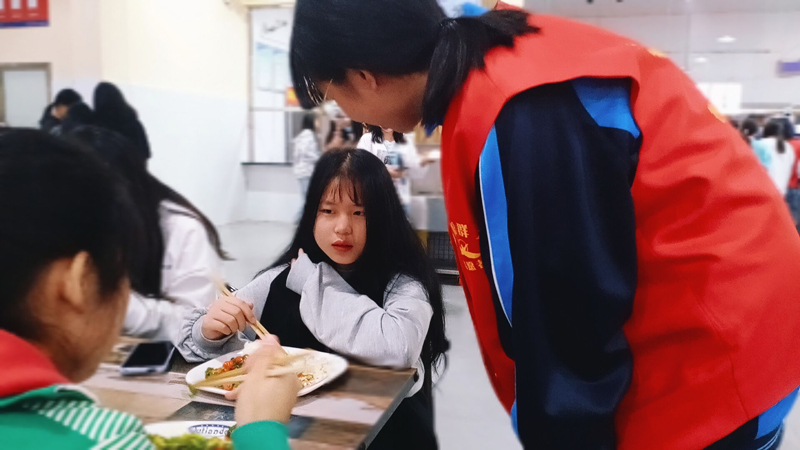 宣講完畢后,老師和團(tuán)學(xué)干部們一起繼續(xù)開展餐間值守活動,監(jiān)督促進(jìn)同學(xué)們自覺養(yǎng)成“光盤”的好習(xí)慣。