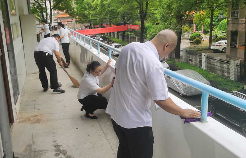 7月1日,經(jīng)貿(mào)系黨總支組織全體黨員在經(jīng)貿(mào)實(shí)訓(xùn)樓開(kāi)展“黨旗在基層高高飄揚(yáng)”主題黨日---志愿服務(wù)活動(dòng)。清理商貿(mào)實(shí)訓(xùn)樓樓道、墻壁死角、蜘蛛網(wǎng)。以實(shí)際行動(dòng)幫助保潔員減輕工作負(fù)擔(dān),美化校園環(huán)境。