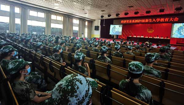 9月5日下午三點(diǎn),經(jīng)貿(mào)系組織2021級(jí)新生在學(xué)院大禮堂召開入學(xué)教育大會(huì)。經(jīng)貿(mào)系行政領(lǐng)導(dǎo)、各教研室主任及新生班主任、連隊(duì)教官參加大會(huì)。會(huì)議由綜合科科長(zhǎng)唐佳潔主持。