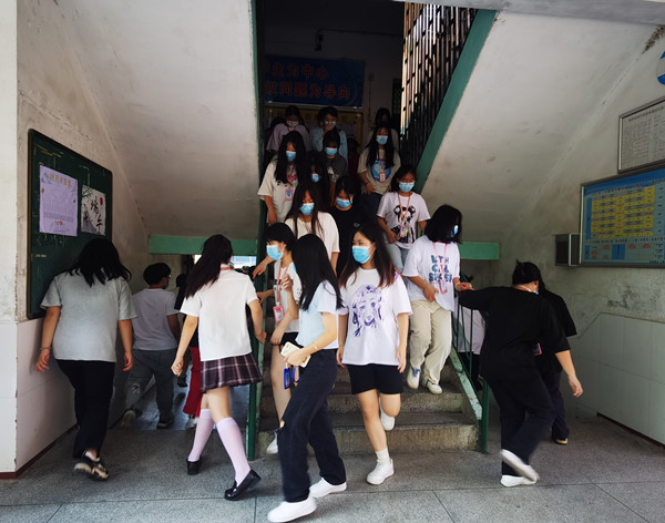 隨著一陣急促的警報聲響起,拉開了“火災(zāi)疏散演練”的序幕。聽到警報聲的老師立即到達指定位置,指導(dǎo)學(xué)生們彎腰低頭,捂住口鼻,按照事先設(shè)定的疏散路線快速、有序的撤離,任課老師在安全區(qū)域?qū)Π嗉壢藬?shù)進行清點上報,整個疏散過程井然有序。