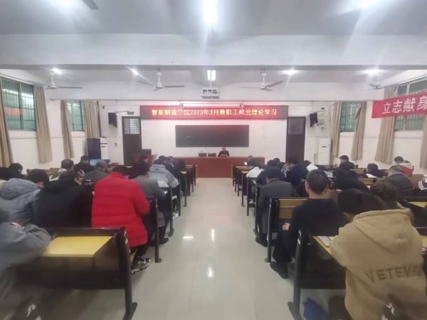 3月23日下午,智能制造學院全體教職工在一教學樓一樓東頭多媒體開展2023年3月政治理論學習。專職副書記王陽春主持會議,二級學院全體教職工參加學習。