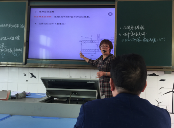 寧偉嫦老師將夾具課程中的“套筒零件鉆孔”章節(jié)內(nèi)容通過啟發(fā)式、探究式的教學(xué)方法,結(jié)合PPT、視頻等多媒體教學(xué)手段,將枯燥難懂的定位元件、概念及圖紙講解得清晰易懂,重難點(diǎn)突出,深受學(xué)生的喜歡,特別是課堂環(huán)節(jié)中穿插了大國工匠王樹軍的個人故事,讓學(xué)生了解了工匠精神中精益求精的過程,明白了創(chuàng)新精神的重要性,學(xué)生受益匪淺,在場聽課的老師也很有收獲。寧老師的課堂在傳授專業(yè)知識的同時達(dá)到了育人的效果。