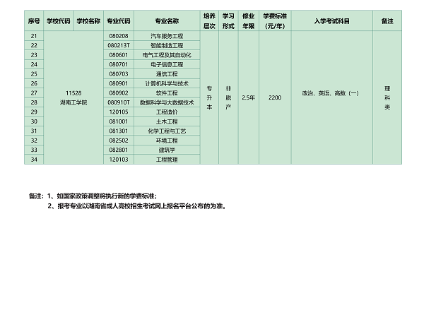湖南工學院成教學生補考安排
