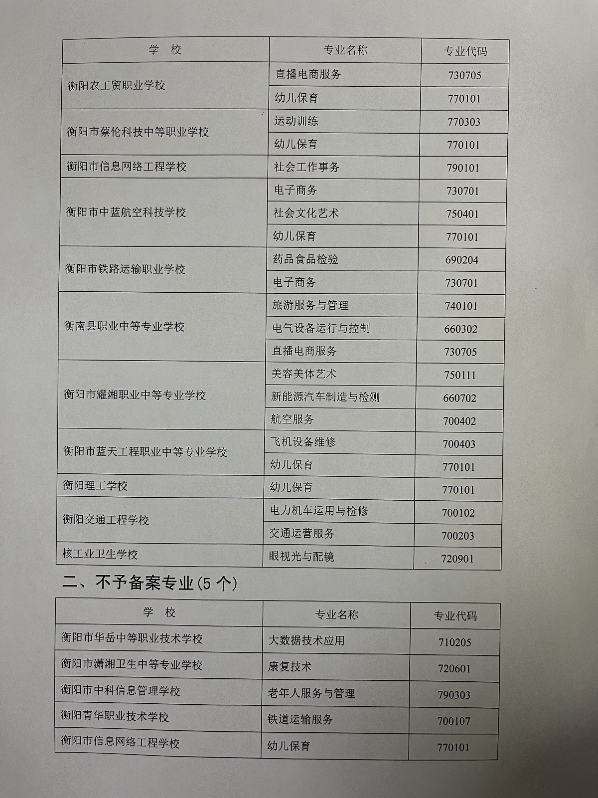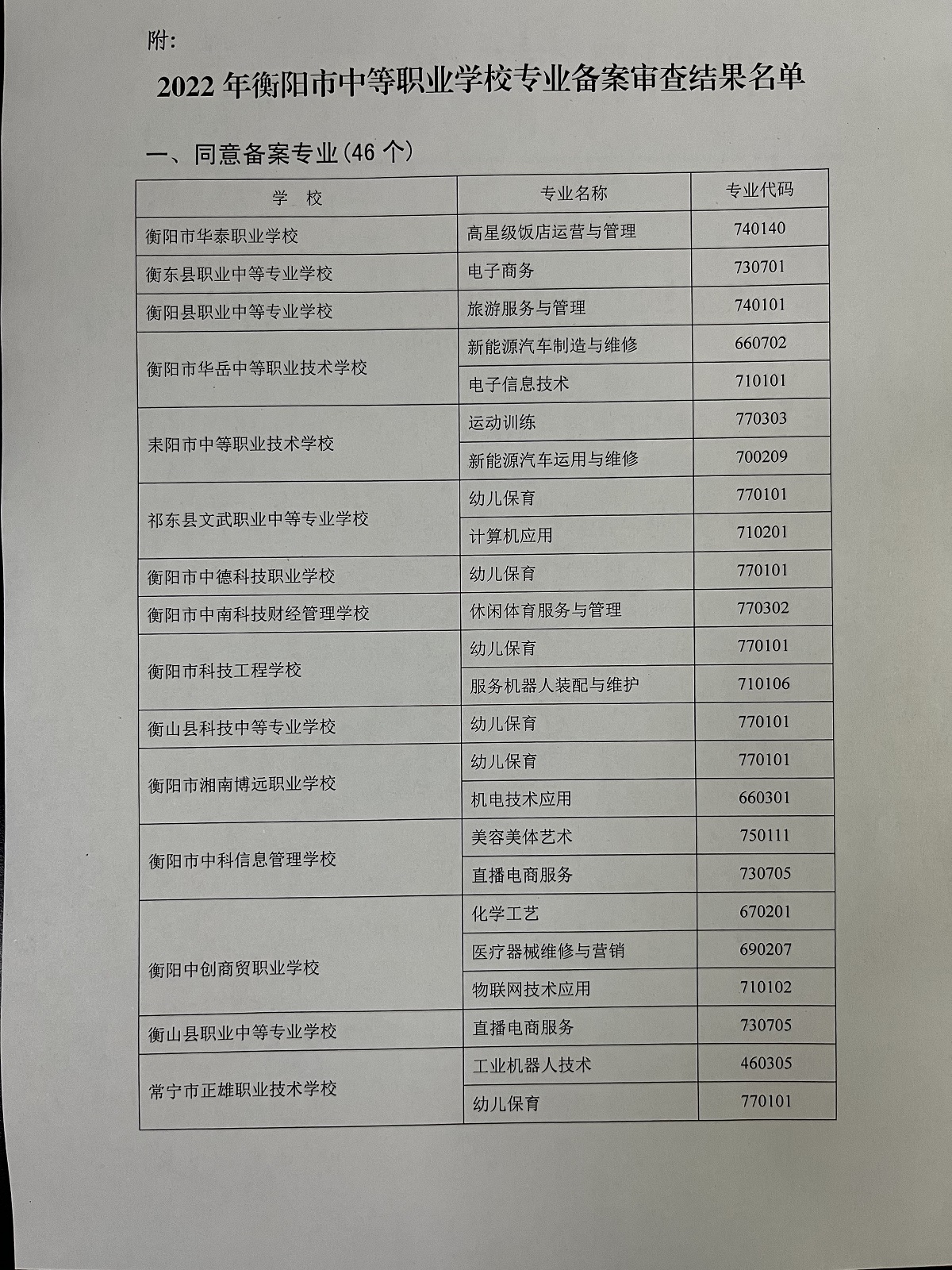 關(guān)于公布2022年衡陽市中等職業(yè)學(xué)校專業(yè)備案審查結(jié)果的通知