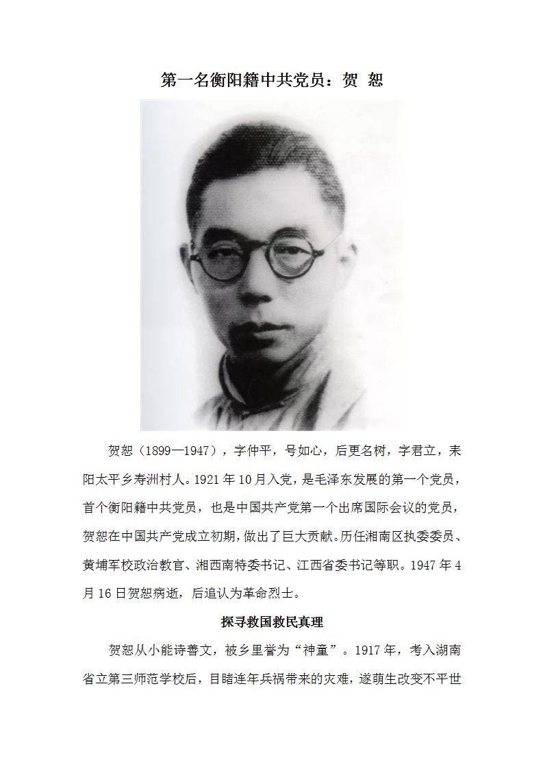 第一名衡陽(yáng)籍中共黨員——賀恕
