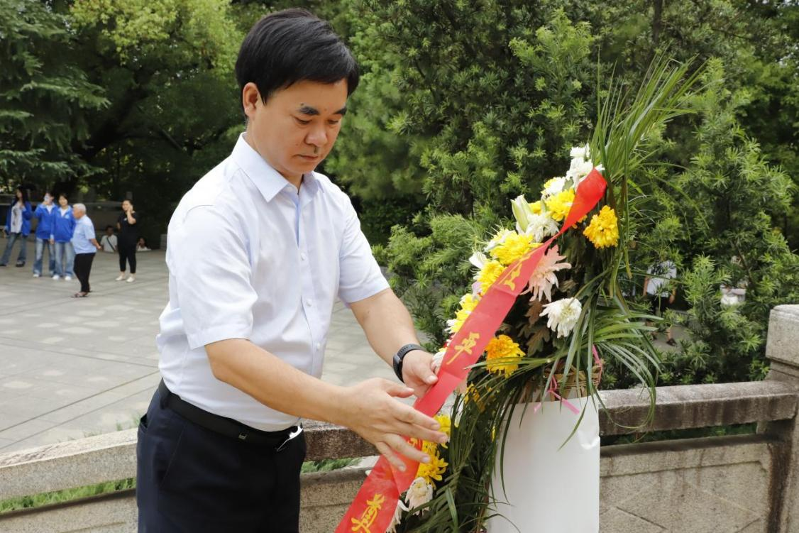 馬克思主義學(xué)院院長張碧泉整理花籃上的緞帶