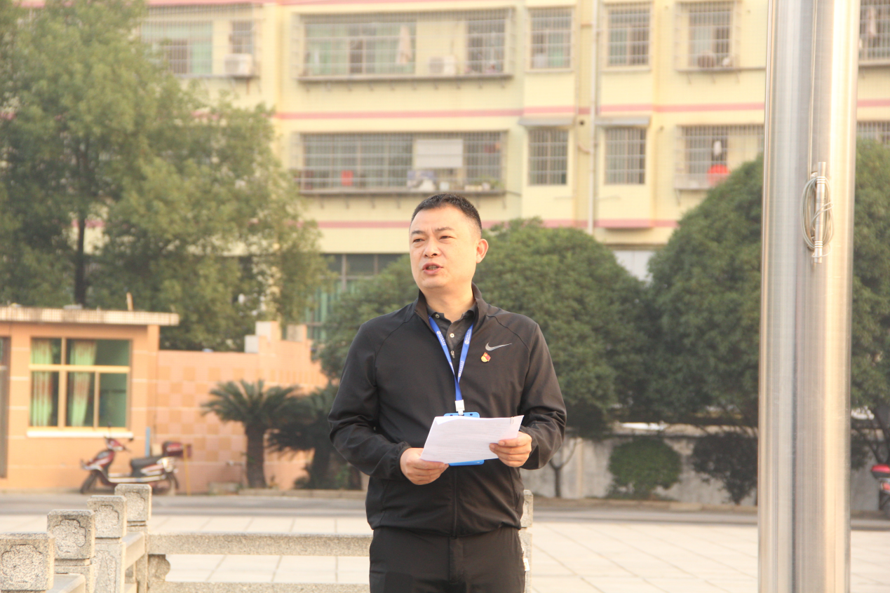 本次“國旗下的講話”活動共舉行了四項議程:大會第一項議程,升國旗,奏唱國歌。伴隨著雄壯的國歌聲,五星紅旗冉冉升起,全體師生肅立注目,為本次儀式拉開了序幕。