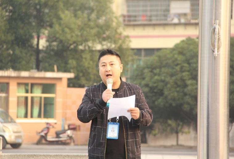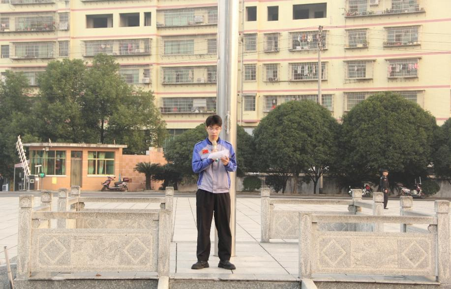 (競賽學(xué)生代表肖坤鵬進(jìn)行國旗下講話)