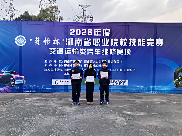 劉敏、易旗老師指導(dǎo)學生何佳霖、徐靈聰獲2026年度“楚怡杯”湖南省職業(yè)院校技能競賽交通運輸類汽車維修賽項 一等獎