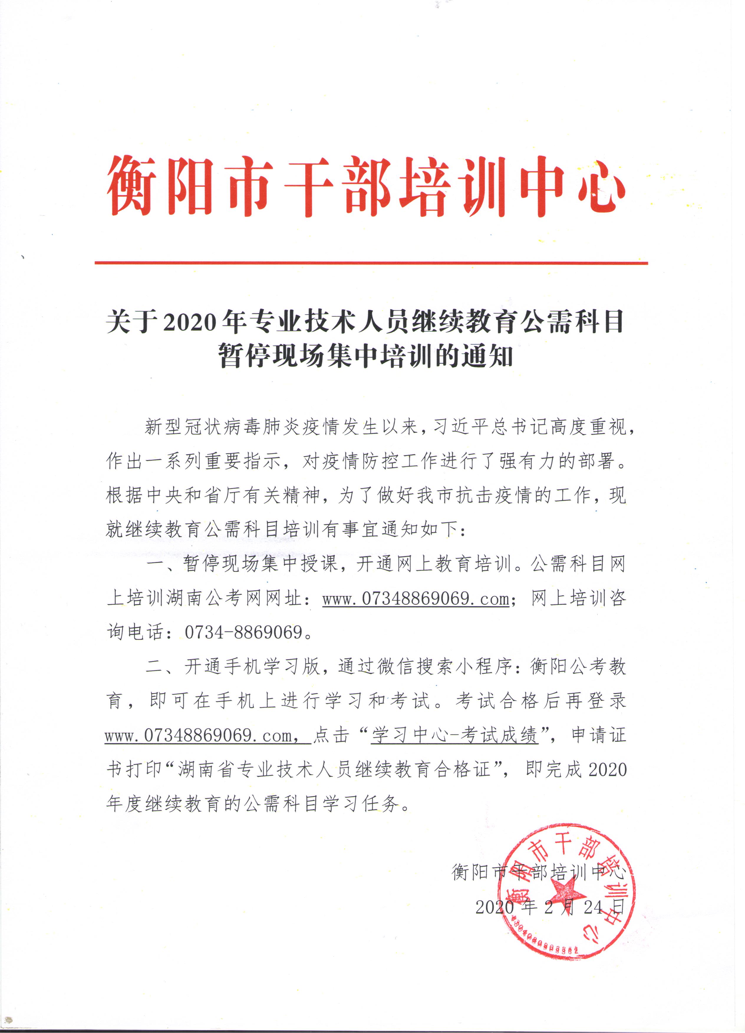 關于2020年專業(yè)技術人員繼續(xù)教育公需科目暫?,F(xiàn)場集中培訓的通知