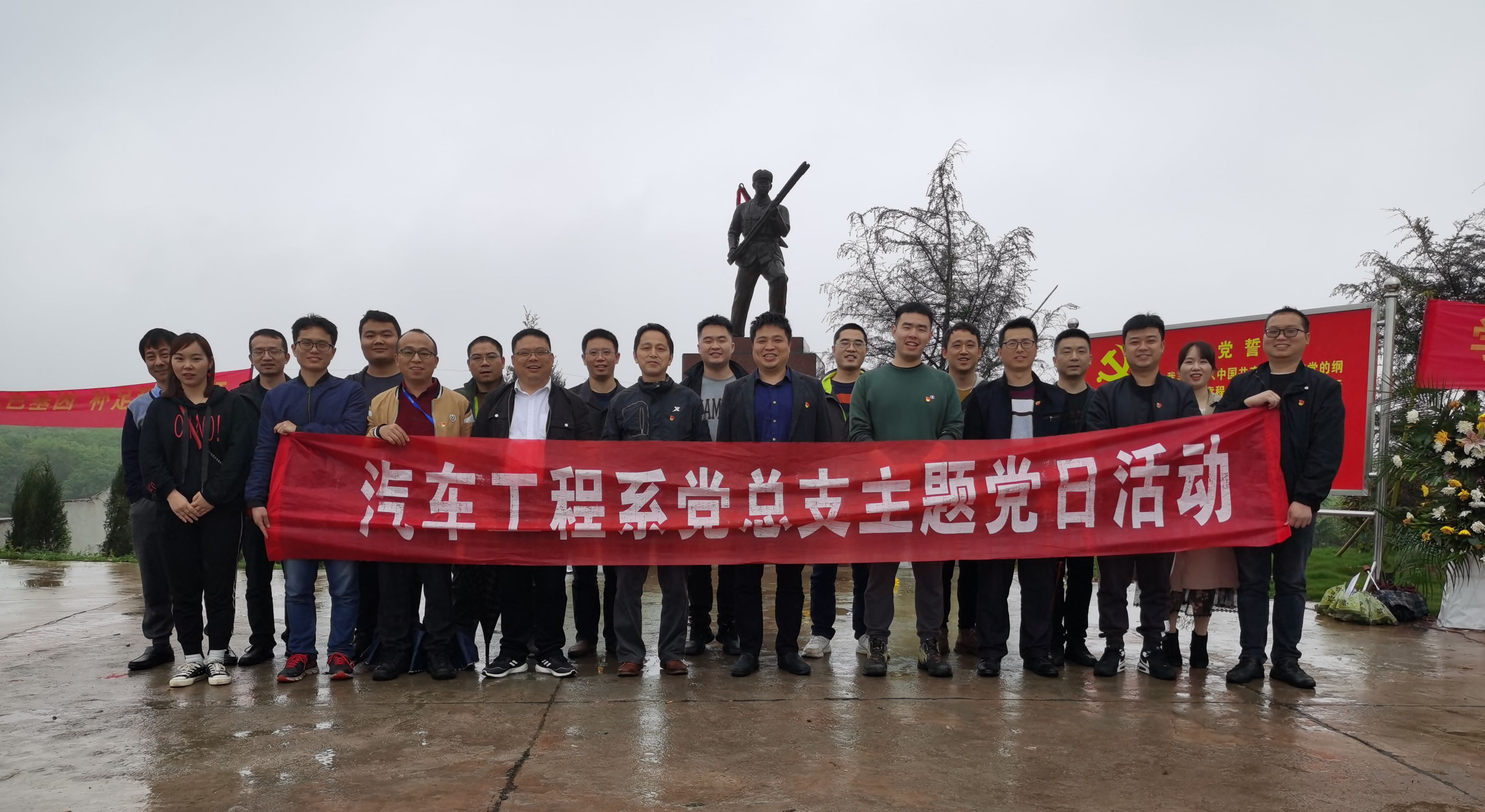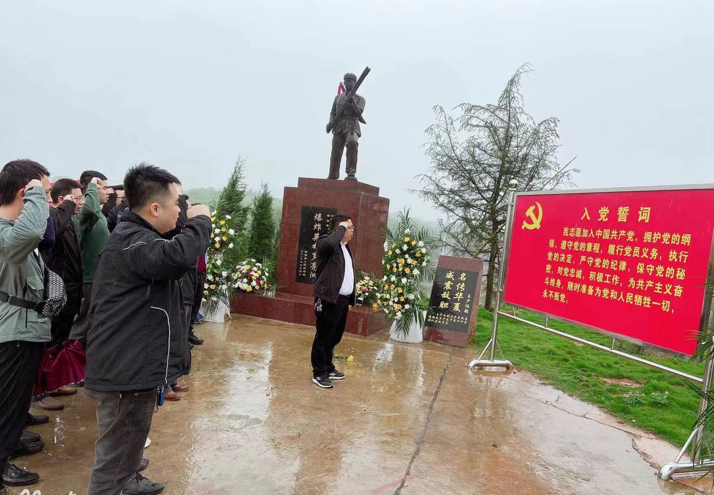 全體黨員在羅亮泗英雄雕像前合影留念
