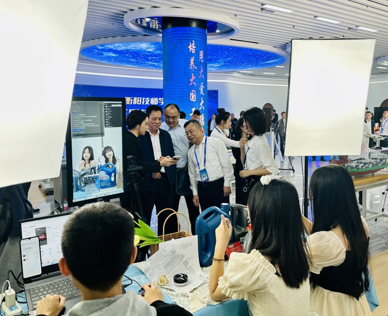 上午10時(shí)30分,在院領(lǐng)導(dǎo)的陪同下,技能文化節(jié)展廳迎來(lái)的第一波客人,他們是來(lái)自衡陽(yáng)市政府相關(guān)的領(lǐng)導(dǎo)以及衡陽(yáng)各縣區(qū)知名企業(yè)領(lǐng)導(dǎo)。各展臺(tái)頓時(shí)熱鬧非凡,有講解員解說(shuō)的聲、有參觀者的咨詢、有直播平臺(tái)的互動(dòng)、有現(xiàn)場(chǎng)才藝的展示,一時(shí)間將技能文化節(jié)推向了高潮。有鄉(xiāng)村振興學(xué)院現(xiàn)場(chǎng)制作精美小禮品、也有智能制造學(xué)院為參觀者現(xiàn)場(chǎng)演示的3D打印技術(shù);有信息工程學(xué)院現(xiàn)場(chǎng)的服裝設(shè)計(jì)、也有經(jīng)貿(mào)旅游學(xué)院的茶藝展示;有交通工程學(xué)院的現(xiàn)場(chǎng)的發(fā)動(dòng)機(jī)拆裝比武、有電氣工程學(xué)院的小蠻腰燈光秀、還有全場(chǎng)最潮的現(xiàn)代物流學(xué)院的直播帶貨。