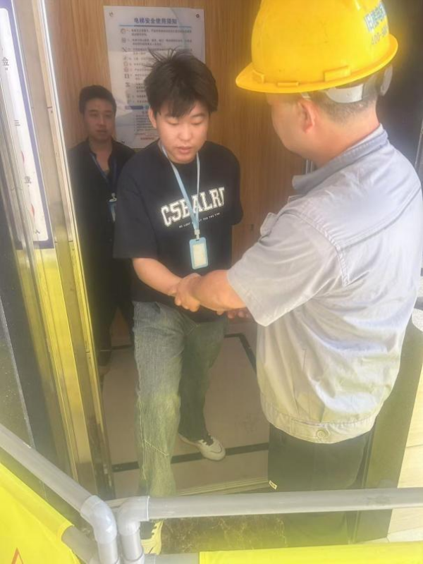 電梯平層后,救援人員用三角鑰匙打開電梯門,將被困人員安全救出,此時被困人員情緒穩(wěn)定,未出現(xiàn)異常。