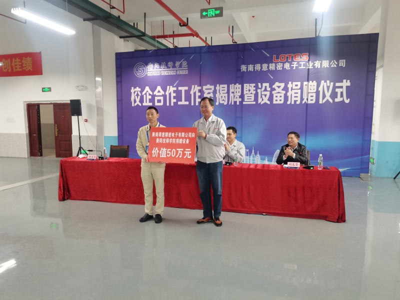 2021年10月21日,衡南得意精密電子工業(yè)有限公司與衡陽技師學(xué)院校企合作工作室揭牌暨設(shè)備捐贈(zèng)儀式在衡陽市公共實(shí)訓(xùn)基地舉行。衡南得意電子與學(xué)院模具設(shè)計(jì)與制造系建立了長期的深度校企合作,開展了教研教改、教學(xué)實(shí)習(xí)、學(xué)徙制、師資培訓(xùn)、畢業(yè)生就業(yè)等方面的合作,這次捐贈(zèng)了4臺(tái)套線切割機(jī)床和8臺(tái)工業(yè)用高配電腦等價(jià)值50多萬元,成就了產(chǎn)學(xué)研結(jié)合、深度校企合作的企業(yè)典范。