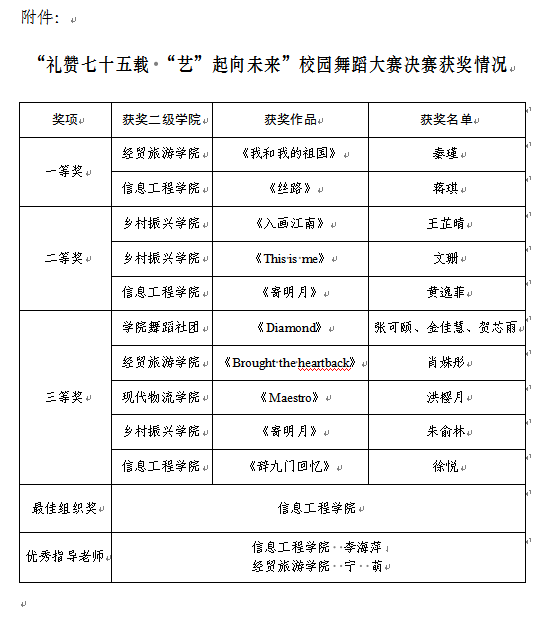 附件:“禮贊七十五載 “藝”起向未來”校園舞蹈大賽決賽獲獎(jiǎng)情況
