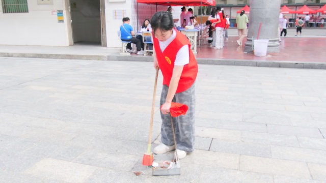 迎新結(jié)束后,志愿者們自發(fā)地做好收尾整理工作