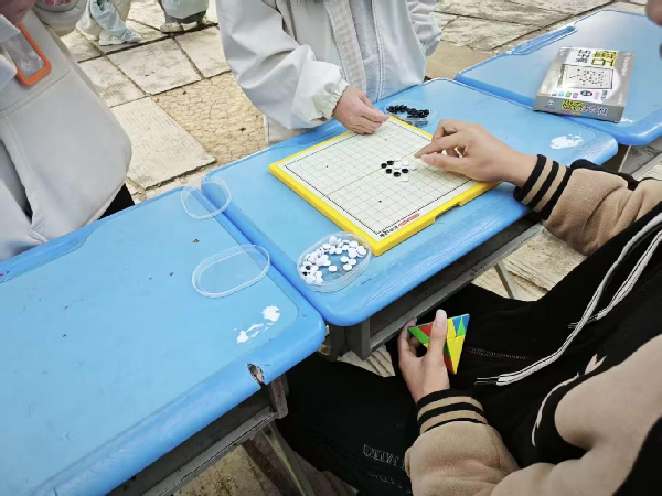 在五子棋對(duì)弈區(qū),同學(xué)們兩兩對(duì)坐,凝神思索、落子從容,在黑白棋子的交錯(cuò)間展現(xiàn)邏輯思辨能力;在多邊形魔方展示區(qū),社員們指尖翻飛,將打亂的魔方快速?gòu)?fù)原,精準(zhǔn)的手法和嫻熟的技巧引得現(xiàn)場(chǎng)贊嘆聲不斷,充分展現(xiàn)了益智項(xiàng)目的獨(dú)特魅力。