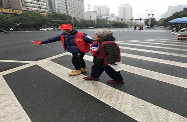 志愿者扶老人過馬路