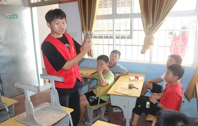 在支教過(guò)程中,在五步拳和籃球教學(xué)過(guò)程中,孩子們雖然動(dòng)作生澀,但現(xiàn)場(chǎng)教學(xué)歡笑聲此起彼伏,同學(xué)們學(xué)的不亦樂(lè)乎。同時(shí),孩子們對(duì)魔方、象棋課程非常感興趣,紛紛投入到課堂里,認(rèn)真聆聽(tīng)老師們講授,整個(gè)課堂充滿濃厚、歡快的學(xué)習(xí)氛圍。
