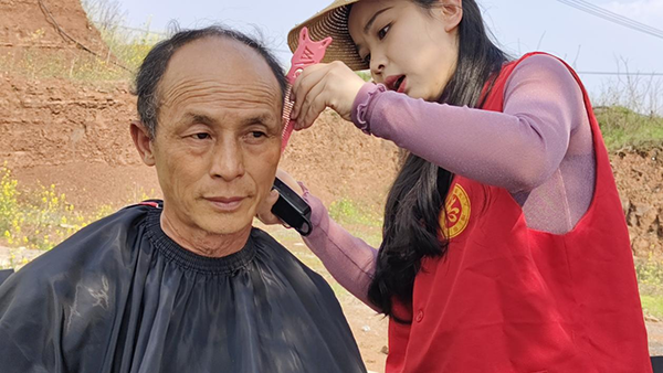 現(xiàn)場(chǎng)設(shè)有愛(ài)心義剪、電器維修、美化環(huán)境等多個(gè)服務(wù)點(diǎn),前來(lái)的居民絡(luò)繹不絕,志愿者們忙得不亦樂(lè)乎。義剪志愿者邊理發(fā)邊詢(xún)問(wèn)老人的意見(jiàn),“兩邊修剪剪短,頭頂修齊整......”在志愿者嫻熟的手法下,一個(gè)個(gè)干凈利落的發(fā)型便成型了。