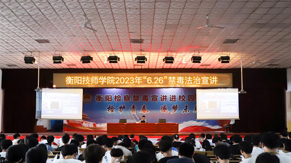 為貫徹落實黨的二十大精神和習近平總書記關(guān)于加強禁毒工作的系列重要指示批示精神,扎實開展學習貫徹習近平新時代中國特色社會主義思想主題教育,6月20日上午,學院在大禮堂開展“6·26”禁毒法治宣講。衡陽市人民檢察院第二檢察部主任張鈞出席活動,衡陽檢察法治宣講專干鄭國寶應(yīng)邀作禁毒知識法治宣講。