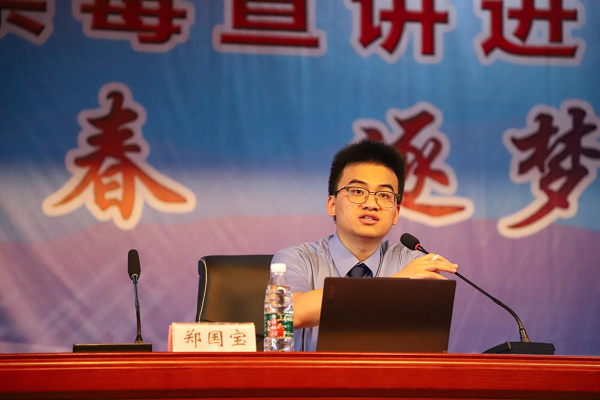 鄭國寶以“青春無毒 逐夢未來”為題,從“識毒品、知毒危、防毒誘”等方面向在場的同學們介紹了毒品的危害,現(xiàn)場講解了關(guān)于禁毒工作的方針、政策和相關(guān)法律法規(guī)。宣講中,他與同學們現(xiàn)場互動,通過觀看禁毒公益宣傳片、現(xiàn)場問答等形式從青少年學生面臨的涉毒風險,結(jié)合吸毒典型案例,為同學們講授了禁毒專業(yè)知識和防毒拒毒的方法技巧。