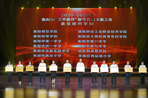 6月1日,2023年衡陽市“慶六一”暨“藝術(shù)童伴”留守兒童關(guān)愛工程主題展演活動在市文化藝術(shù)中心舉行。學(xué)院榮獲2020-2022年衡陽市“藝術(shù)童伴”留守兒童關(guān)愛工程“最佳結(jié)對學(xué)?!狈Q號。
