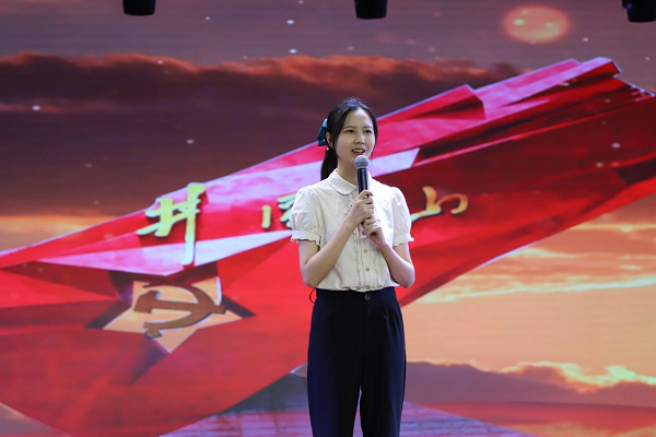“羅亮泗主動請纓,抱著兩根聯(lián)裝的爆破筒,躍出戰(zhàn)壕、匍匐爬向了敵軍坦克……”“爆炸英雄”羅亮泗的革命事跡感動了全場的觀眾,羅亮泗的外孫女王亞琴作為特邀嘉賓來到活動現(xiàn)場?!拔疑砩蟼鞒兄t色基因,身體里流著英雄的血脈,我時刻牢記著傳承紅色精神的責任,講好英雄故事,讓羅亮泗精神永流傳……”,這是王亞琴在得知自己外公的英勇事跡后,舍棄高薪工作,毅然選擇了做一名講解員在戰(zhàn)斗英雄羅亮泗陳列館工作?;顒蝇F(xiàn)場,王亞琴深情地寄語同學們能從革命先烈精神中汲取力量,奮發(fā)圖強,做一個對國家、對社會有用的人。