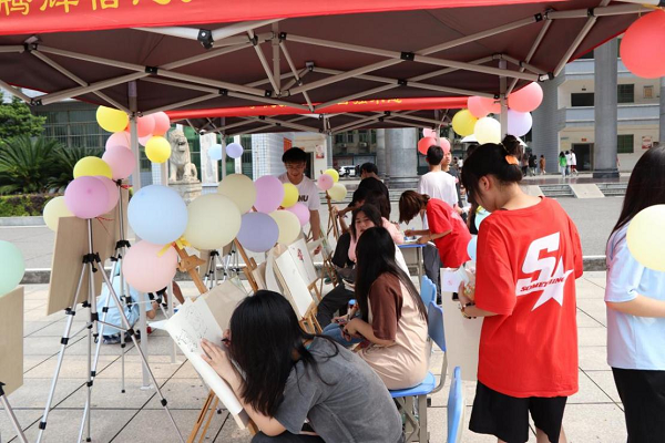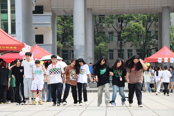 在學(xué)院文化廣場上,“音”你而來、“N人N足”游戲、“解壓涂鴉”“幸福套圈圈”“心情交換盲盒”等有趣活動吸引了數(shù)千名學(xué)生參加,活動現(xiàn)場熱鬧不斷。大家積極合作、大膽參與,興奮溢于言表,對游戲感受頗深。
