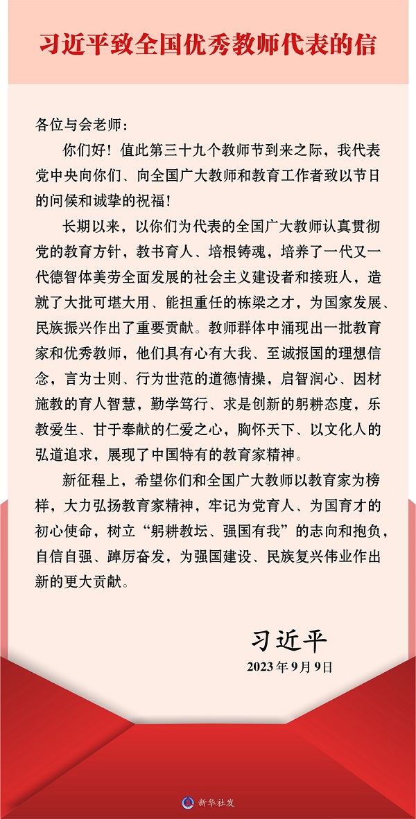 習(xí)近平致全國(guó)優(yōu)秀教師代表的信