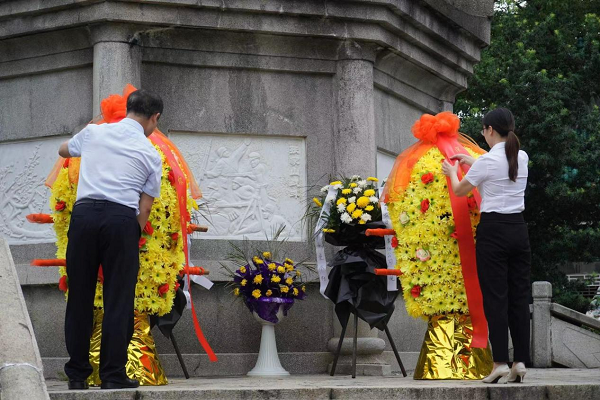 巍巍豐碑,英烈不朽,在岳屏山抗戰(zhàn)紀(jì)念城,全體師生排著整齊的隊(duì)伍,在烈士紀(jì)念碑前敬獻(xiàn)花籃,整理花籃緞帶并三鞠躬。大家懷著崇敬的心情緩步繞行一周,寄托對人民英雄的深切緬懷和崇高敬意。