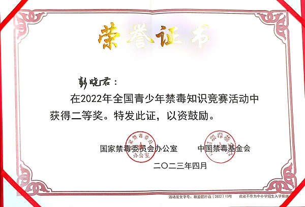 榮獲2022年全國青少年禁毒知識競賽二等獎