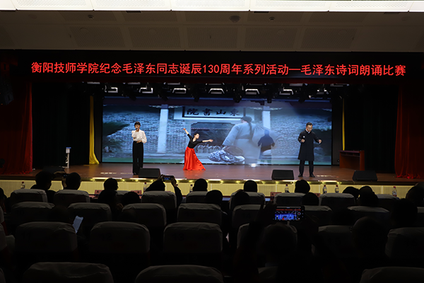 11月29日下午,學(xué)院紀(jì)念毛澤東誕辰130周年系列活動——毛澤東詩詞朗誦比賽在公共實(shí)訓(xùn)基地11樓多功能報告廳舉行。學(xué)院黨委副書記、院長廖與飛及黨委班子成員、師生代表共500余人參加。