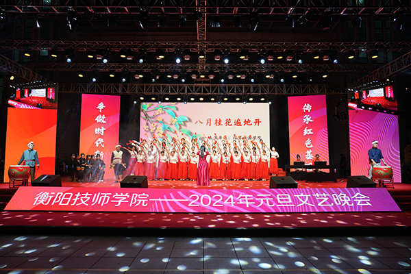 “東方紅,太陽(yáng)升,中國(guó)出了個(gè)毛澤東……”氣勢(shì)磅礴的開(kāi)場(chǎng)鼓舞《東方紅》拉開(kāi)了晚會(huì)序幕。12月26日晚,衡陽(yáng)技師學(xué)院舉辦2024年元旦文藝晚會(huì)。學(xué)院領(lǐng)導(dǎo)、全體師生齊聚一堂,共慶元旦。5.75萬(wàn)網(wǎng)友通過(guò)線上直播觀看晚會(huì)。