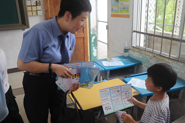 為孩子們發(fā)放法律宣傳手冊(cè)