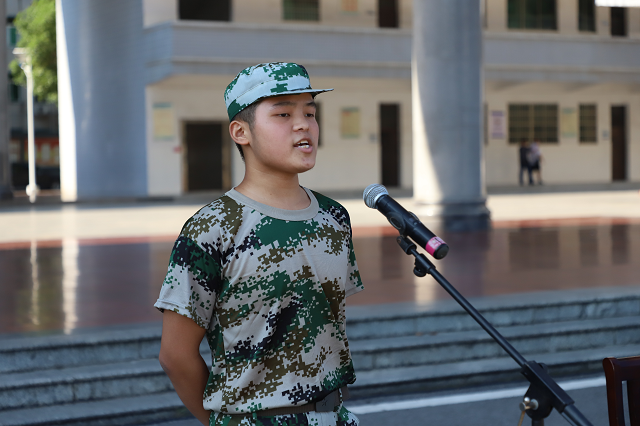 承訓(xùn)單位負(fù)責(zé)人宋三江代表軍訓(xùn)教官鄭重承諾:以身作則,文明訓(xùn)練。希望同學(xué)們在軍訓(xùn)過程中服務(wù)命令,聽從指揮,刻苦訓(xùn)練,磨煉意志品質(zhì)。2021計(jì)軟技師班許良同學(xué)代表全體新生莊嚴(yán)承諾,將嚴(yán)肅認(rèn)真,高標(biāo)準(zhǔn)、高質(zhì)量完成本次軍訓(xùn)任務(wù)。