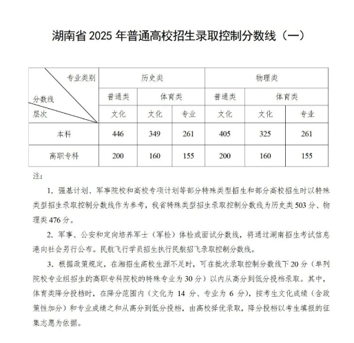重磅!湖南省2025年普通高校(含對口升學(xué))招生各批次錄取控制分?jǐn)?shù)線公布