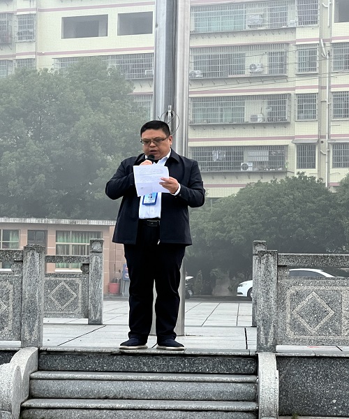 隨后由鄉(xiāng)村振興學院黨總支書記黃海贇在國旗下講話,其主題為:“關注安全、警鐘長鳴”!意旨在進一步引導師生重視安全意識、強化責任擔當,為我校打造平安校園注入強勁動力。晨光熹微,全體師生已陣列嚴整,屏息凝神。當雷霆萬鈞的國歌劃破長空,五星紅旗迎風展開,冉冉升起。一道道目光緊隨國旗,五星紅旗與天際的赤色交相輝映,無聲訴說著對職業(yè)教育信仰的錚錚誓言與無悔擔當。