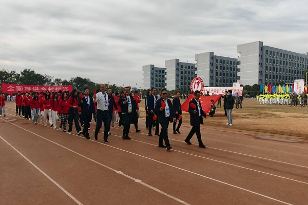 11月19日至20日,衡陽技師學(xué)院舉行第十七屆田徑運(yùn)動會。我院代表團(tuán)50余人以入場序號第三入場,入場式我院體育健兒喊出“ 鄉(xiāng)院健兒,逐夢賽場;振興有我,勢不可擋!”的嘹亮口號通過主席臺。