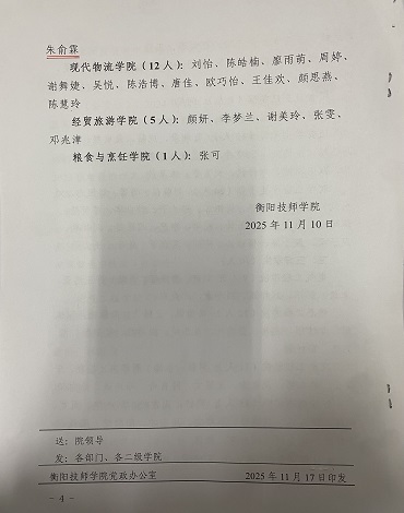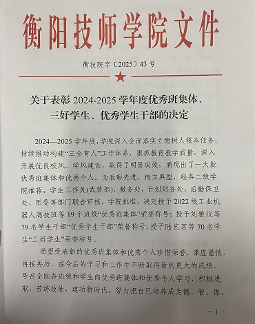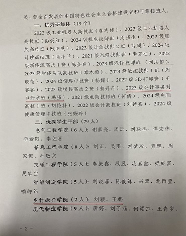 2024-2025學(xué)年度我院有以下班級和學(xué)生榮獲衡陽技師學(xué)院校級榮譽(yù)稱號,現(xiàn)特向鄉(xiāng)村振興學(xué)院和家長報喜!??!