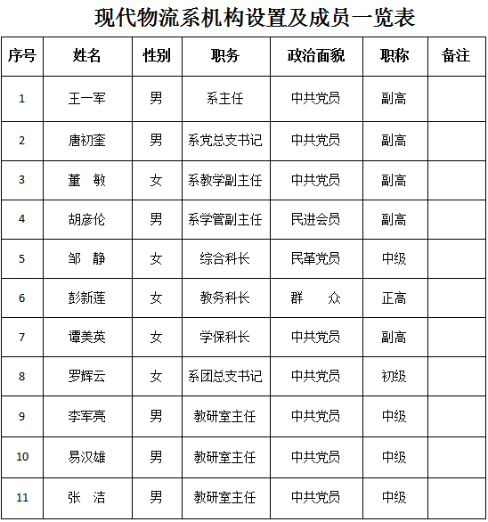 現(xiàn)代物流系機構(gòu)設(shè)置及成員一覽表