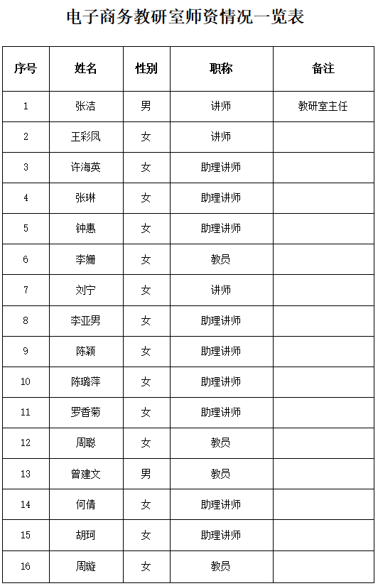 電子商務(wù)教研室?guī)熧Y情況一覽表