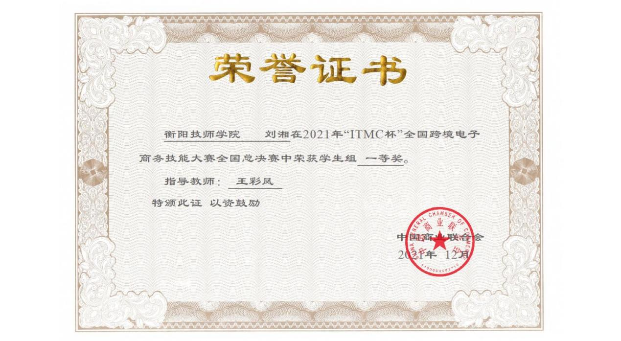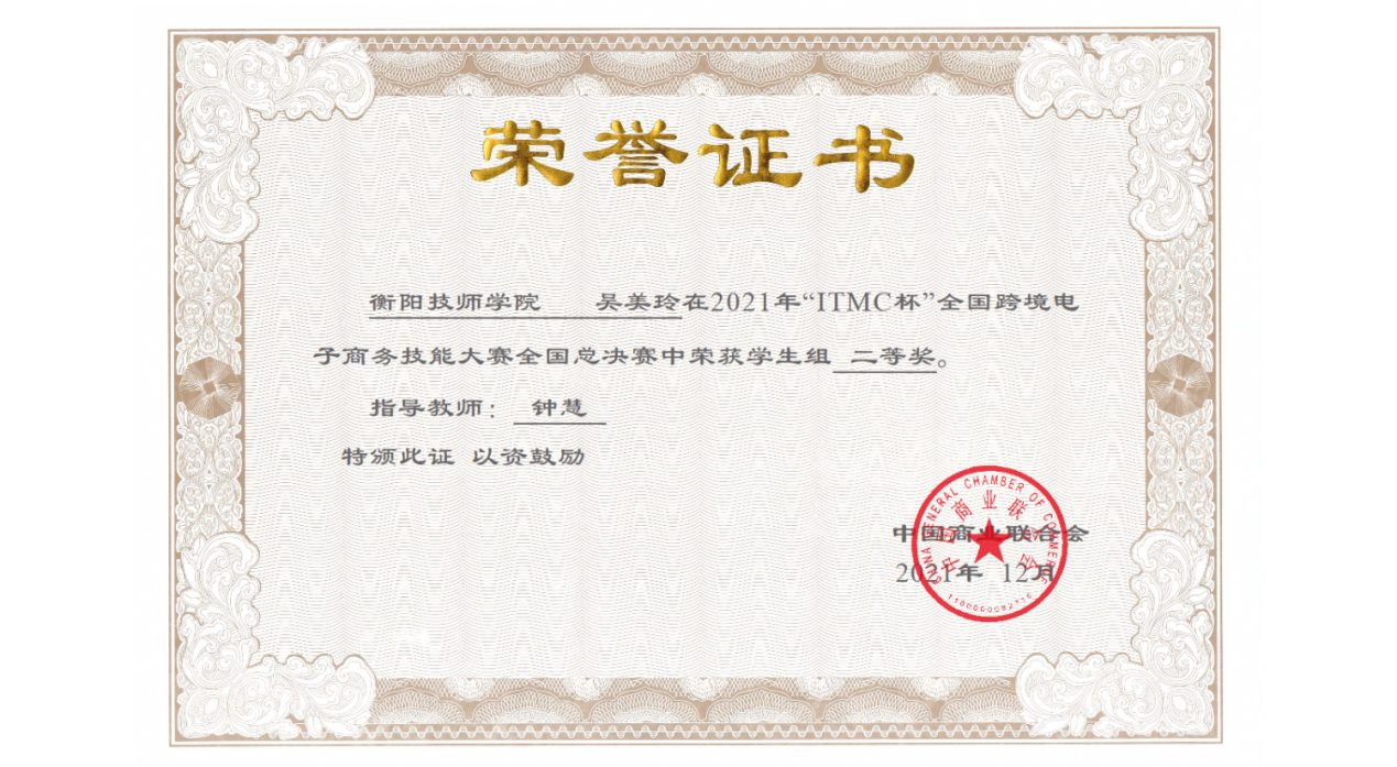 在剛剛結(jié)束的2021年“ITMC杯”全國跨境電子商務(wù)技能大賽中,我系傳來喜報,師生共獲得1個一等獎、2個二等獎和2個三等獎的好成績。本屆比賽由中國商業(yè)聯(lián)合會主辦,中國商業(yè)聯(lián)合會互聯(lián)網(wǎng)應(yīng)用工作委員會承辦。