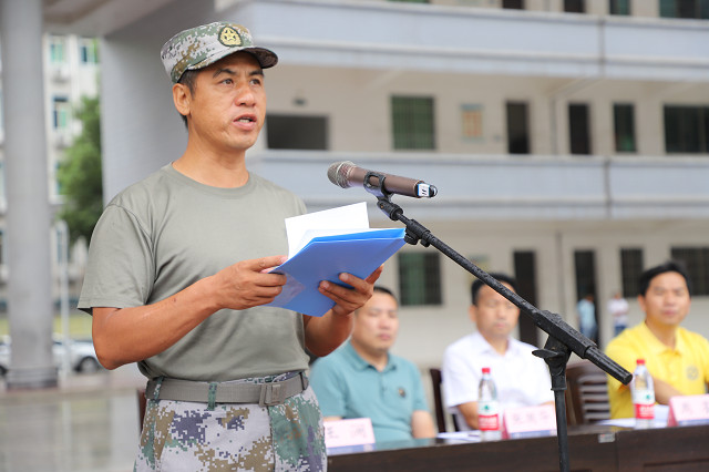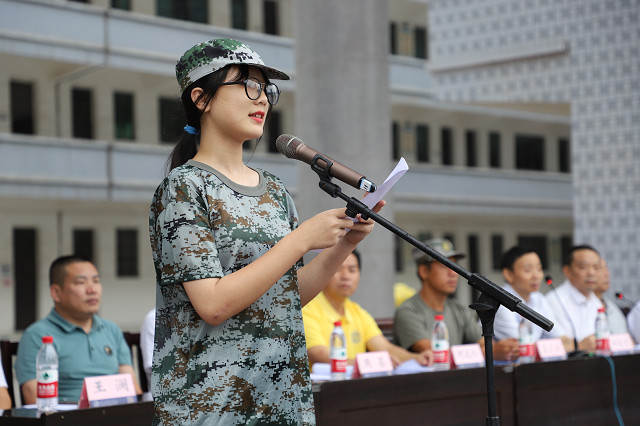 參訓(xùn)學(xué)生代表2020廣告技師班陶宇靚同學(xué)上臺(tái)發(fā)言,表達(dá)了堅(jiān)持訓(xùn)練,認(rèn)真接受?chē)?guó)防教育的決心。承諾軍訓(xùn)期間學(xué)習(xí)軍人的愛(ài)國(guó)風(fēng)采,傳承軍人的吃苦精神,練就軍人的錚錚傲骨,迎難而上,磨煉意志,向?qū)W校、教官、向親人送上一份滿意的答卷。