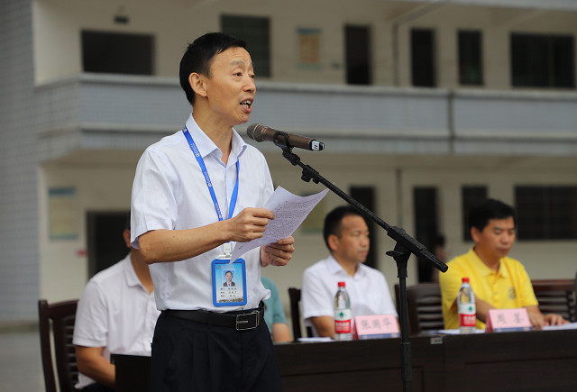 在莊重的國(guó)歌聲中,大會(huì)拉開(kāi)帷幕。學(xué)院院長(zhǎng)邱家長(zhǎng)首先代表學(xué)院對(duì)新入校的新生表示熱烈的歡迎,對(duì)大力支持學(xué)校軍訓(xùn)工作的全體教官們表示衷心的感謝。他指出,軍訓(xùn)是開(kāi)學(xué)的第一課,作為當(dāng)代青年學(xué)生,要具有愛(ài)國(guó)主義情懷,樹(shù)立正確的政治信仰和崇高的理想,通過(guò)軍訓(xùn),接受?chē)?guó)防知識(shí)教育,學(xué)習(xí)軍人愛(ài)國(guó)風(fēng)采,樹(shù)報(bào)國(guó)之志;要增強(qiáng)軍訓(xùn)自覺(jué)性,以飽滿的熱情,昂揚(yáng)的斗志接受考驗(yàn),學(xué)習(xí)軍人敢于拼博、勇于吃苦的品質(zhì),并延續(xù)到今后學(xué)習(xí)生活中;要把學(xué)習(xí)軍人嚴(yán)明的紀(jì)律、過(guò)硬的作風(fēng)和自覺(jué)遵守學(xué)校規(guī)章制度結(jié)合起來(lái),培養(yǎng)軍人的氣質(zhì),軍人的素養(yǎng),軍人的優(yōu)良作風(fēng)和團(tuán)隊(duì)精神。
