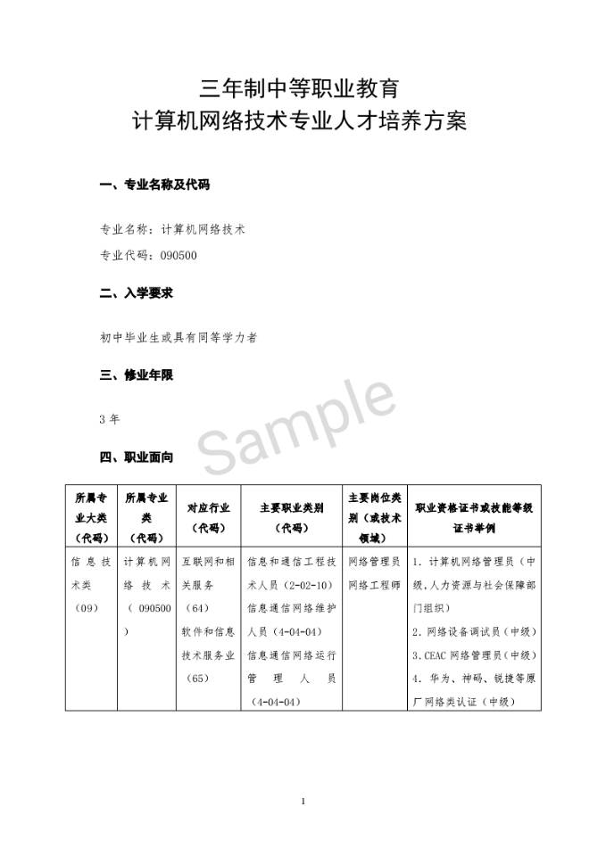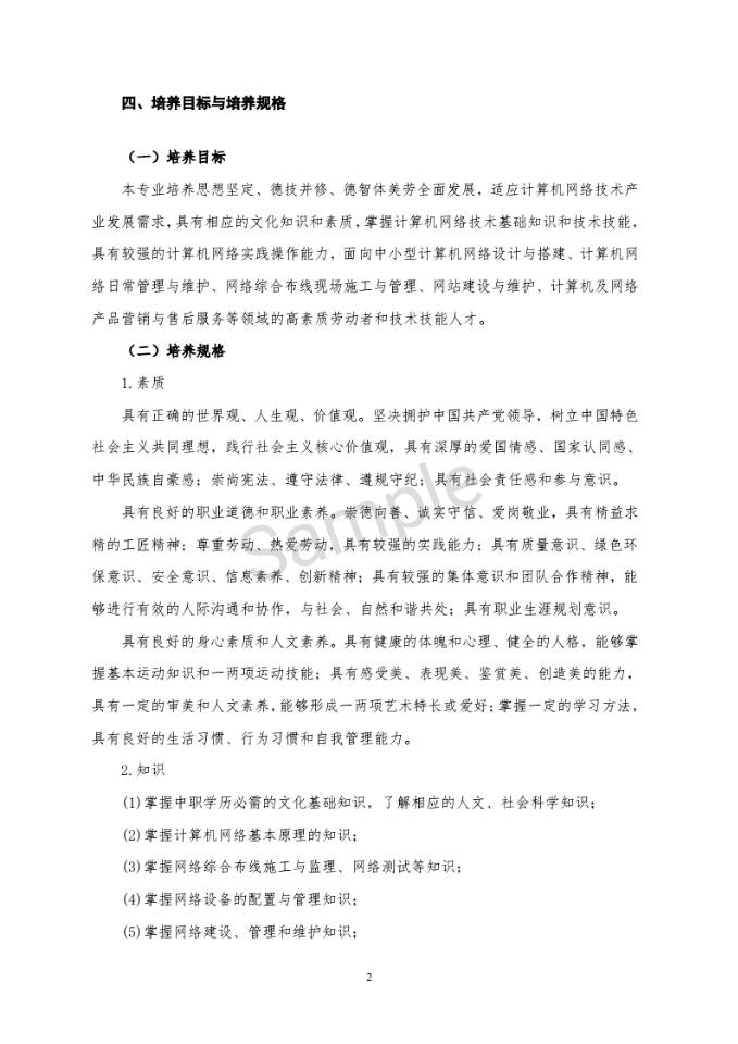 計算機(jī)網(wǎng)絡(luò)技術(shù)專業(yè)人才培養(yǎng)方案