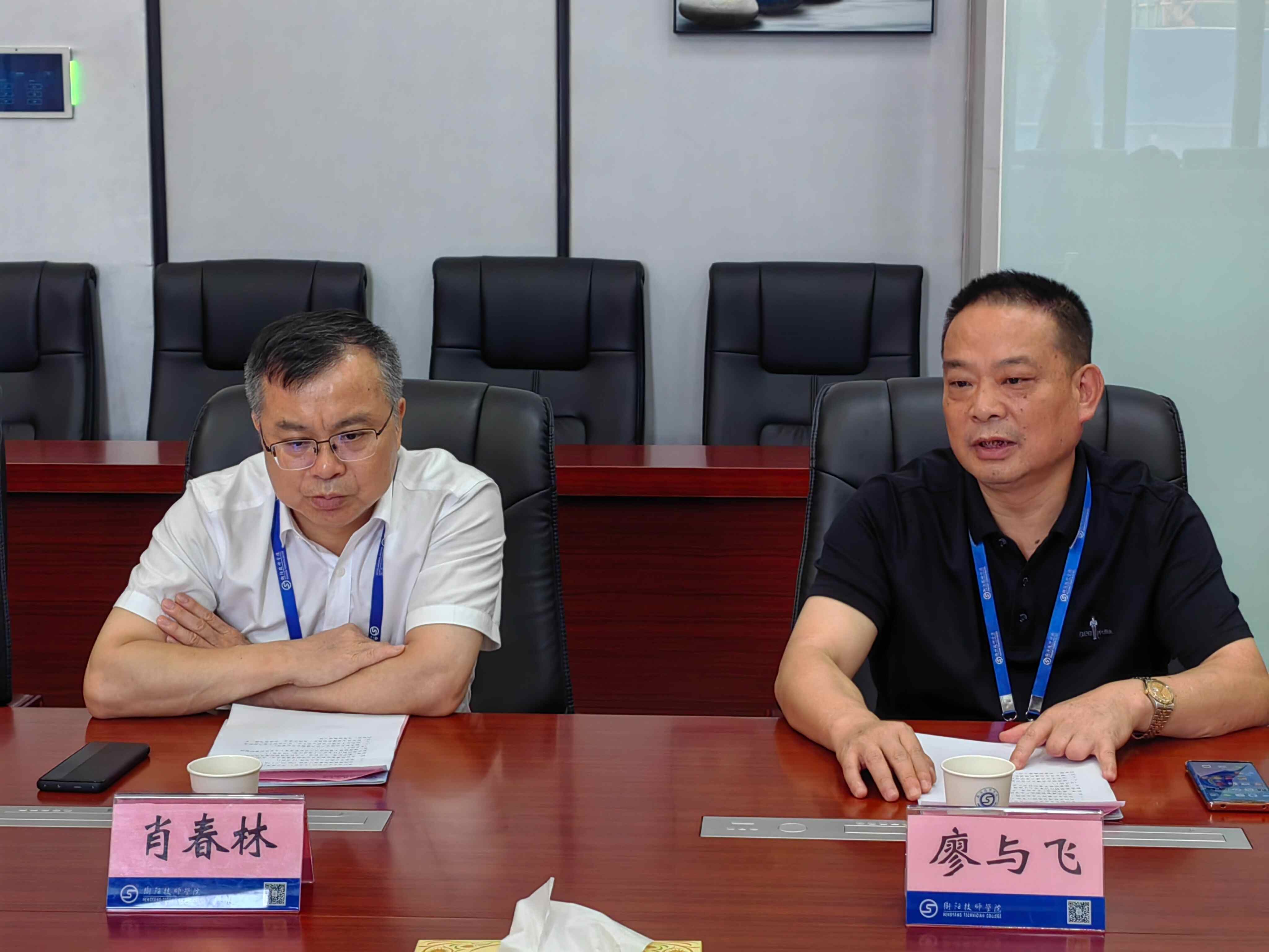 學(xué)院黨委書記肖春林、院長廖與飛、副院長成朝陽、歐陽智勇、周少良及相關(guān)部門、二級學(xué)院負(fù)責(zé)人參加會談。