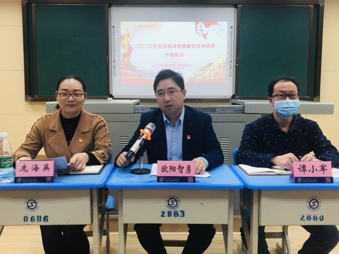 11月7日至9日,學(xué)院舉辦2020年度發(fā)展對(duì)象及新黨員培訓(xùn)班,黨委委員、組織人事處處長(zhǎng)歐陽(yáng)智勇出席開(kāi)班儀式并講授電影黨課,2020年度發(fā)展對(duì)象、預(yù)備黨員、新發(fā)展黨員參加培訓(xùn)。